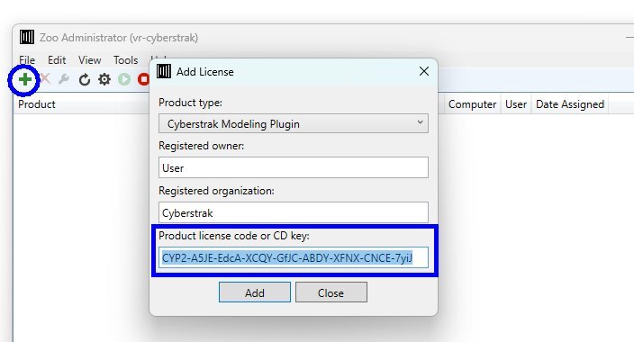 Cyberstrak supports the Rhino LAN Zoo for the usage of license keys on several computers ("Floating Licensing"). To use this license scheme you need to purchase in the Cyberstrak Online store a Zoo based license ("perpetual"). This license has no expiration date, but can be used in a network only for a dedicated number of parallel Cyberstrak users.